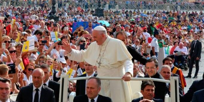 Francisco comentou que “Deus se ‘atua’ na Redenção, quer dizer, na salvação que nos é doada com o sangue de seu Filho Jesus”.